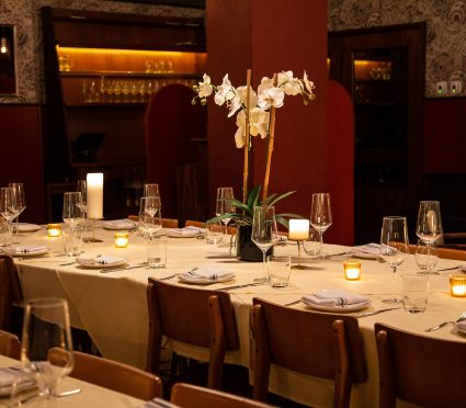 Host your event in the private dining room of Smyth Tavern. Named for the vibrant red tones throughout the room, The Red Room offers a private bar, intimate lounge area, and flexible seating in a dining room with arching ceilings and a roaring fireplace. Perfect for weddings and celebrations, business meetings and more, The Red Room accommodates up to 85 for a cocktail style event and 70 for a seated dinner.
